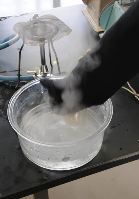 3 るつぼばさみは、滑り落とさないように事前練習する