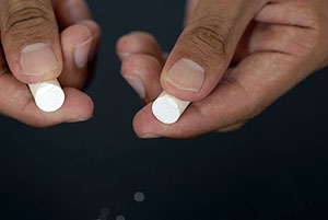 → 上:チョークを物理的に小さくする様子