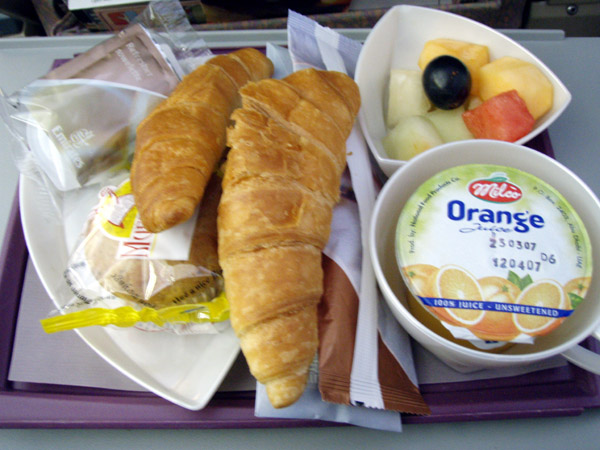 ほぼ予定時間通りに飛び立った。私はそれから寝た。朝食の量は少なく、クロワッサンを追加してもらった。フランデーは大したものではなかったが、久しぶりなので美味しく頂いた。また、ブランデーの後のビールは不味く感じる。