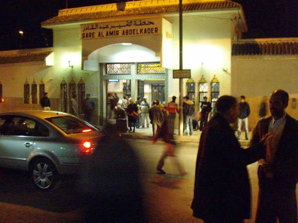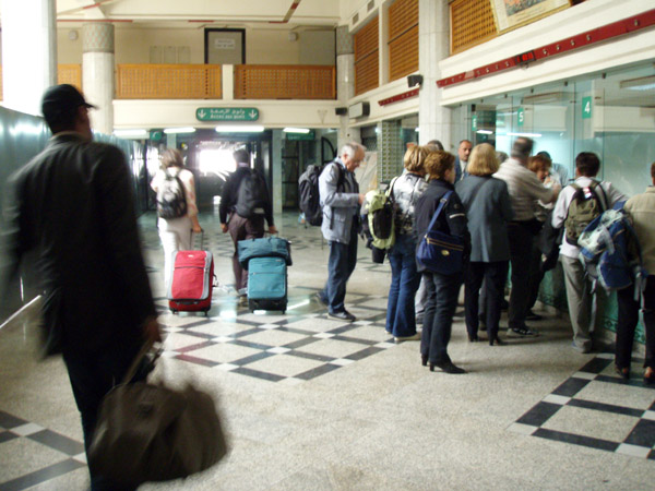 上:カサブランカ空港に隣接する鉄道駅のチケット売り場。1時間に1本しかないけれど、時間の誤差は1分以内と考えてよい。また、その他の路線のタイムテーブルもかなり正確で、非常に信用おけるものだった。16:00 カサブランカの駅にて