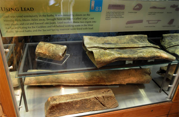 上:鉛でつくられた菅など(水漏れを防ぐために鉛が使われています)