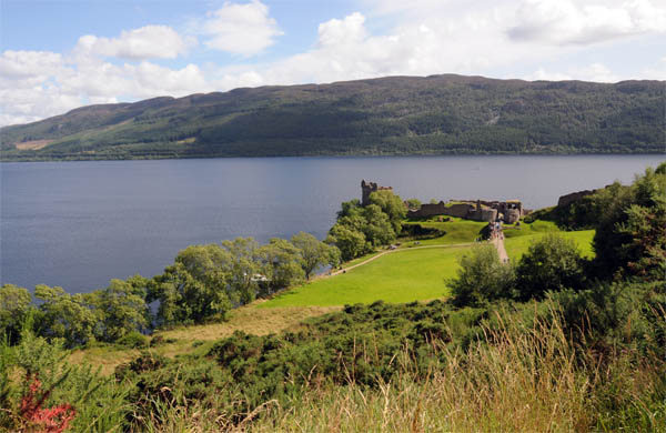 上:見晴しが良いマークがついていた『ネス湖』のビュー・ポイント湖を見られる! と思って車を止めましたが、結果は上の写真の通り。ショックで階段を降りるのを止めました。すごすごと車へ戻り、アーカート城を目指しました。アーカート城はネス湖中央に位置し、周辺に恐竜ネッシーに関する博物館や行楽施設があります。面白ければ湖を1周しますが、さもなければ時間短縮のため同じ道を戻ります。